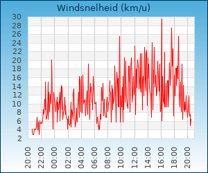 | Maximale windsnelheid | 29.5 km/u om 16:04 u |