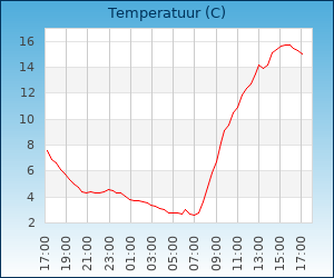 | Maximum temp. | 15.7 °C om 15:03 u |