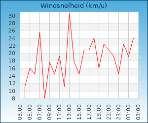 Windsnelheid en -richting | 20.9 km/u uit ZW |