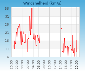 | Maximale windsnelheid | 36.4 km/u om 03:26 u |