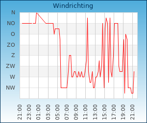 Windsnelheid en -richting | 0.0 km/u uit NO |