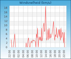 | Maximale windsnelheid | 18.7 km/u om 13:53 u |