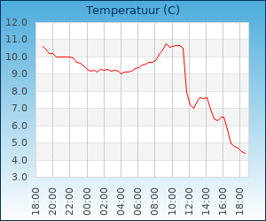 | Maximum temp. | 10.8 °C om 09:21 u |