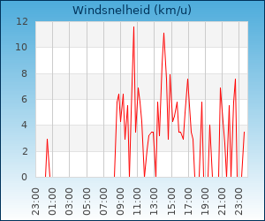 | Maximale windsnelheid | 11.6 km/u om 10:33 u |