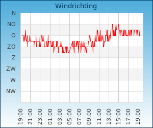 | Windsnelheid en -richting | 0.0 km/u uit ONO |