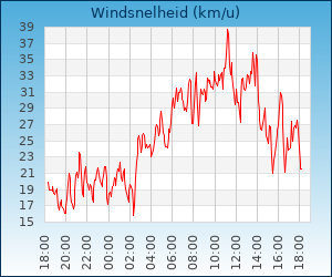 | Windsnelheid en -richting | 29.0 km/u uit WZW |