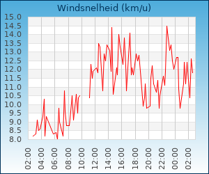 | Maximale windsnelheid | 13.2 km/u om 00:15 u |