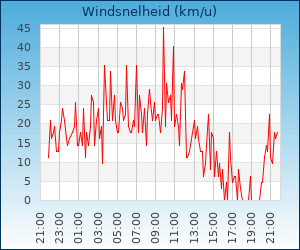 | Maximale windsnelheid | 45.1 km/u om 09:50 u |