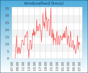| Maximale windsnelheid | 22.5 km/u om 02:20 u |