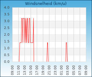 | Maximale windsnelheid | 3.2 km/u om 02:18 u |