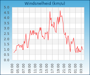 | Windsnelheid en -richting | 1.3 km/u uit WNW |