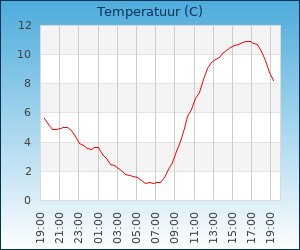 | Maximum temp. | 11.0 °C om 16:27 u |