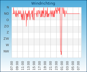 | Windsnelheid en -richting | 0.0 km/u uit NO |