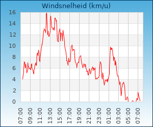 | Maximale windsnelheid | 21.2 km/u om 01:25 u |
