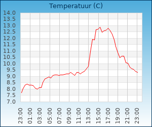 | Maximum temp. | 13.0 °C om 15:09 u |