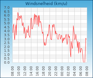 | Maximale windsnelheid | 8.6 km/u om 04:15 u |