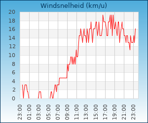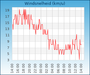 | Maximale windsnelheid | 43.5 km/u om 16:25 u |