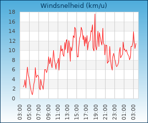 | Maximale windsnelheid | 18.7 km/u om 00:44 u |