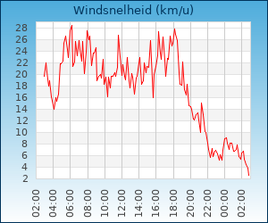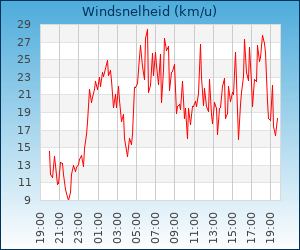 | Maximale windsnelheid | 16.9 km/u om 00:12 u |