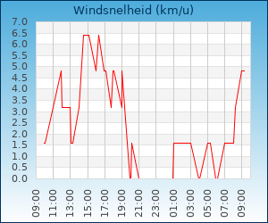 | Maximale windsnelheid | 8.0 km/u om 13:00 u |