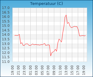 | Maximum temp. | 16.4 °C om 13:00 u |