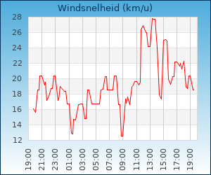 | Windsnelheid en -richting | 19.9 km/u uit Z |