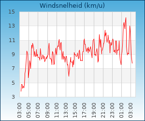 | Maximale windsnelheid | 25.6 km/u om 01:50 u |