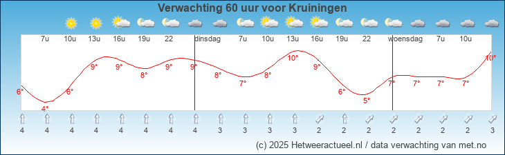 Onderstaande verwachtingen voor Kruiningen zijn gemaakt op basis van de XML feeds van Met.no. De ervaring leert dat deze een redelijk betrouwbaar verwachting geven.
