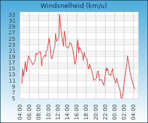 Maximale windsnelheid | 33.1 km/u om 12:20 u |