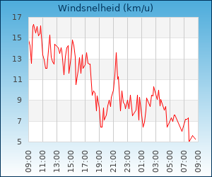 Windsnelheid en -richting | 8.1 km/u uit ZW |