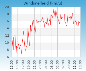 | Maximale windsnelheid | 19.9 km/u om 04:50 u |