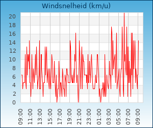 | Maximale windsnelheid | 28.8 km/u om 03:58 u |