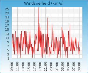 | Maximale windsnelheid | 20.9 km/u om 00:15 u |