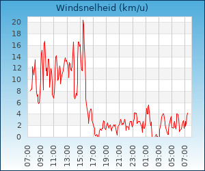 | Maximale windsnelheid | 11.2 km/u om 01:21 u |