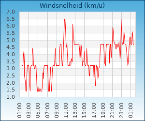 | Windsnelheid en -richting | 4.7 km/u uit NO |