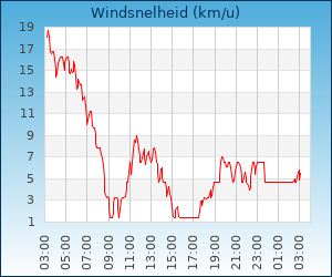 | Maximale windsnelheid | 28.8 km/u om 01:19 u |
