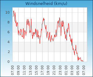 | Maximale windsnelheid | 18.7 km/u om 01:45 u |