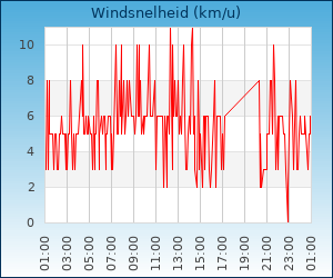 | Maximale windsnelheid | 18.0 km/u om 21:25 u |