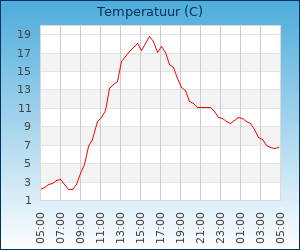 | Maximum temp. | 20.0 °C om 15:49 u |