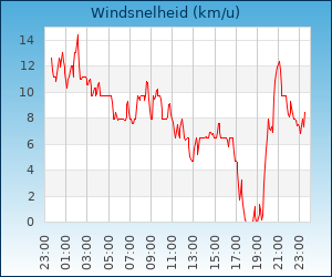 | Maximale windsnelheid | 32.0 km/u om 01:56 u |