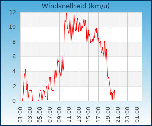 | Maximale windsnelheid | 28.8 km/u om 12:30 u |