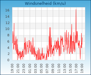 | Maximale windsnelheid | 16.3 km/u om 16:54 u |