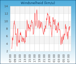 | Maximale windsnelheid | 16.9 km/u om 00:31 u |