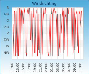 Windsnelheid en -richting | 2.0 km/u uit NW |