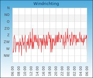 | Windsnelheid en -richting | 12.9 km/u uit WNW |