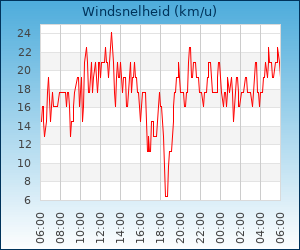 | Maximale windsnelheid | 54.7 km/u om 05:07 u |