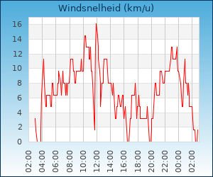 | Maximale windsnelheid | 14.5 km/u om 00:45 u |