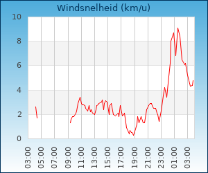 | Windsnelheid en -richting | 6.5 km/u uit WNW |