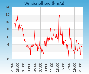 | Maximale windsnelheid | 13.6 km/u om 13:28 u |