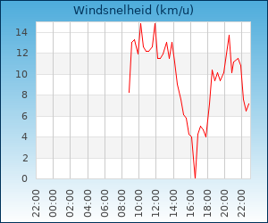 | Windsnelheid en -richting | 10.1 km/u uit O |